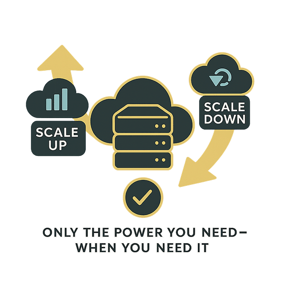 Need a big launch on day one? Not a problem. Once the initial surge settles, we can scale resources down—turning off unused servers, archiving heavy logs, and shifting to lighter instances—so you never pay for capacity you don’t need. Our flexible architecture lets you tighten costs without sacrificing performance or security, and you can dial things back up just as quickly whenever growth returns.